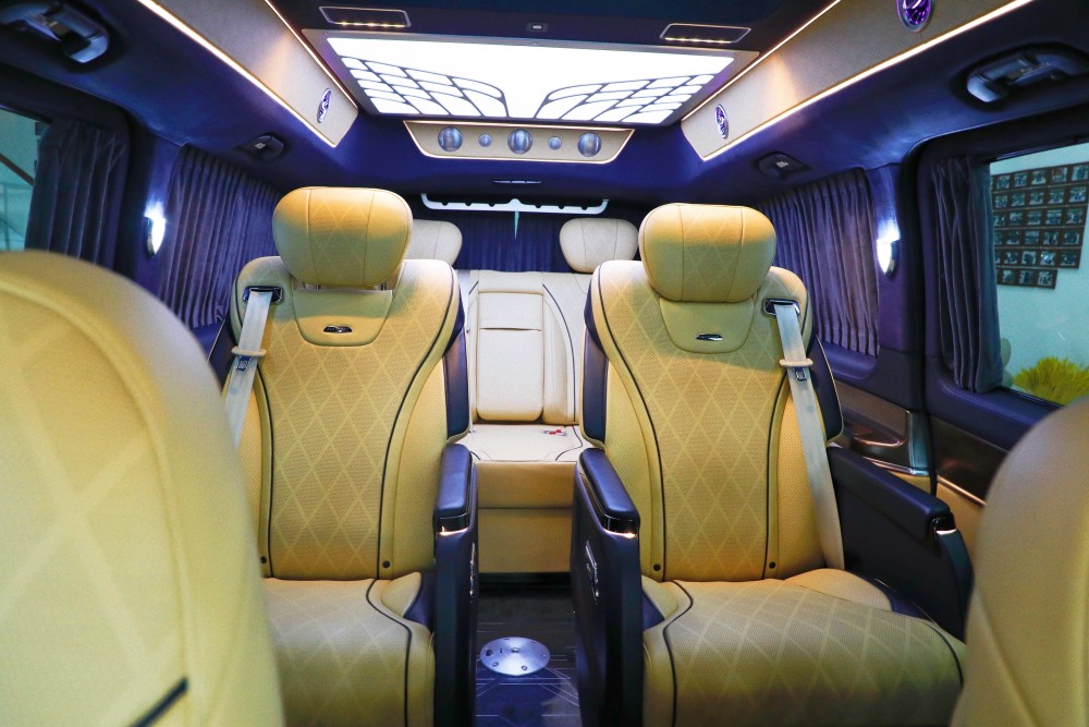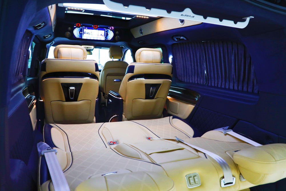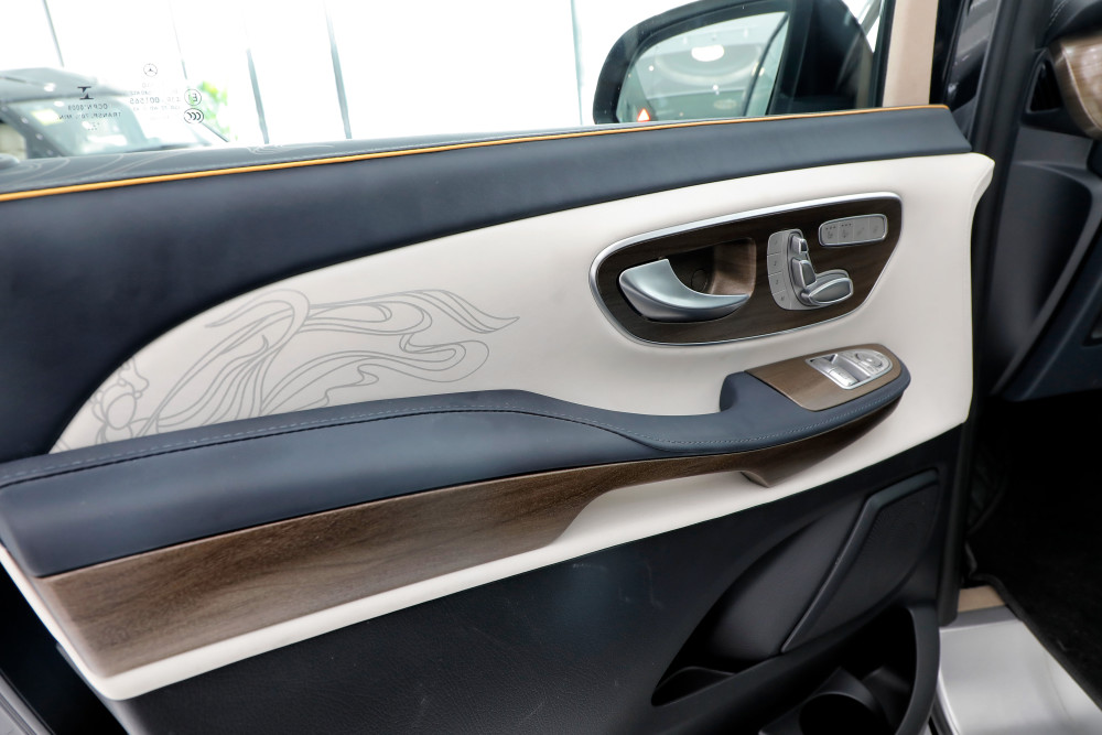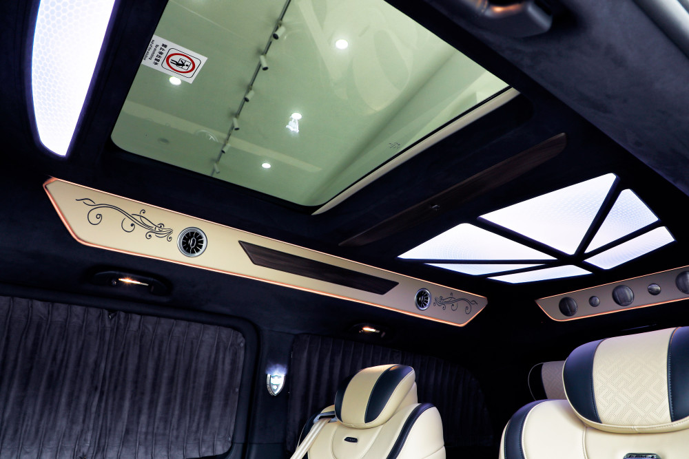 我们再来看最后一款,上周刚刚下线到店的百万级定制头等舱,外观并没有选用这两年大红大紫的迈巴赫风格,而是最近并不多见的AMG运动风格套件。