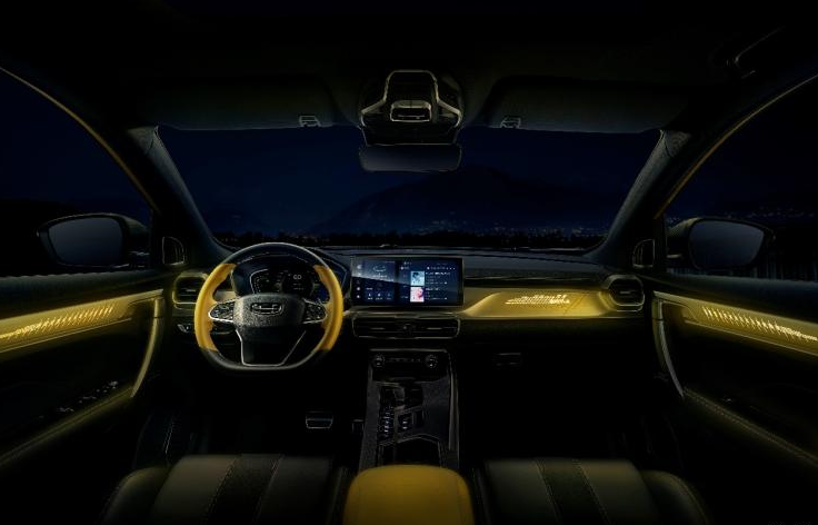 内饰方面,新车采用了与外观相同的黑黄撞色设计,大量的线条勾勒出很强的层次感,同时,新车在用料方面还是比较厚道,座椅加入了Alcantara材质和大量软性材质包裹,在用车品质方面,新车配备了12.3英寸中控大屏和多功能方向盘,并内置了吉利目前最新的娱乐操作系统。值得注意的是,新车配备了专属运动化定制的72色律动氛围灯,可以根据驾驶模式,呈现出多种光效。