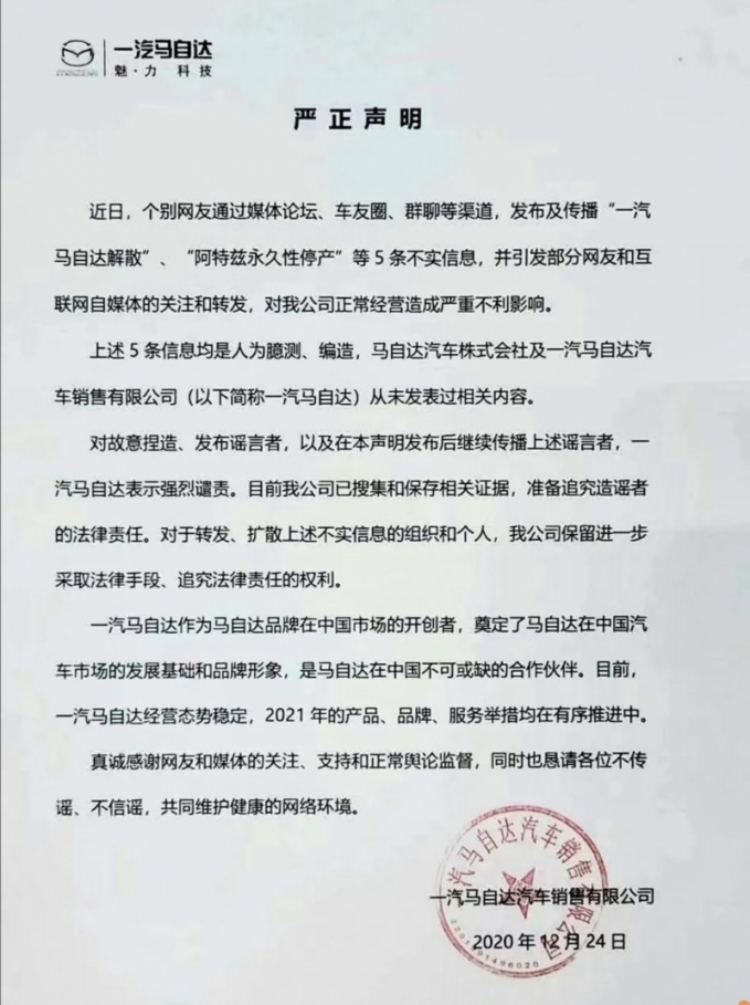去年年底,网上有消息称,一汽马自达(以下简称“一马”)计划于2021年6月解散,但立刻遭到了一马官方的否认。尽管消息不属实,但也不难看出一汽马自达缺乏爆款产品、质量问题频发、销量连续四年下滑的困局。与兄弟企业长安马自达(以下简称“长马”)一对比,一马的颓势明显,存在感不高。