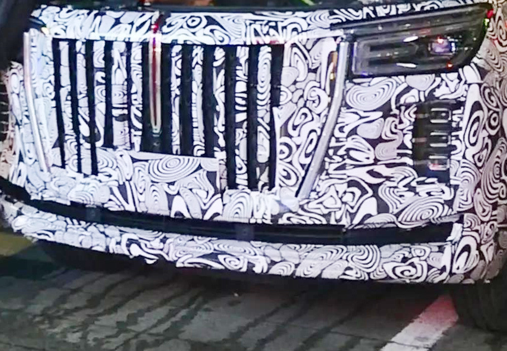 新车前脸采用了红旗H9上开始使用的最新设计风格,使用了大型的“高山流水”概念的直瀑式中网格栅,机盖上的条形车标延续到了中网格栅上。大灯是分体式造型,应该是和红旗H9类似,上下两部分分别是远近光灯组,另外也能看到灯组内侧延伸向下到前杠位置的灯带,应该也会提供飞翼式的日行灯。前脸气场非常强大,不输劳斯莱斯库里南。