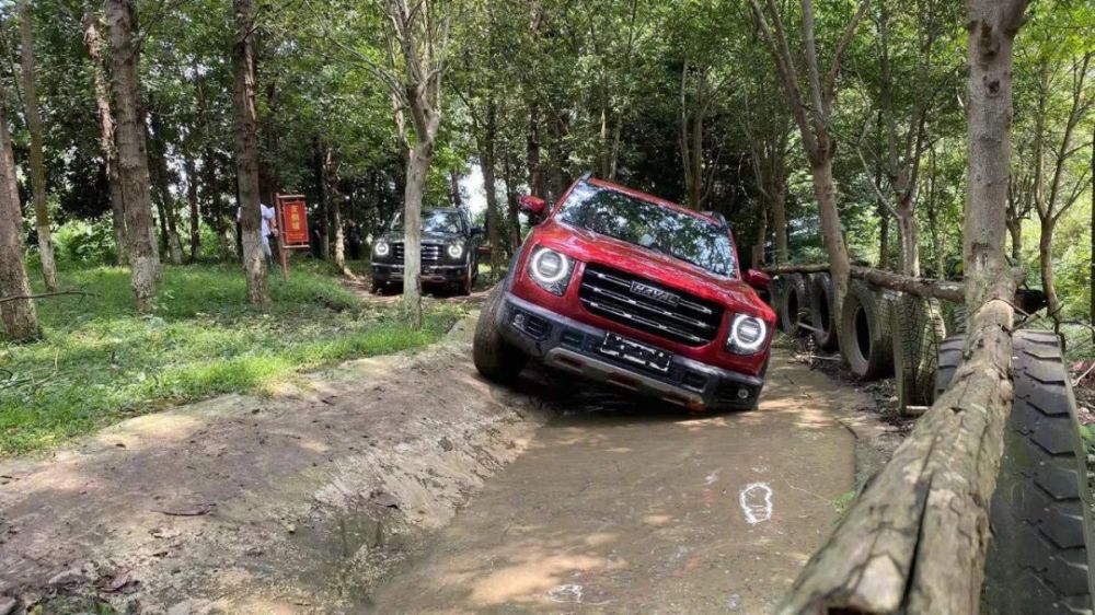 我们这次试驾的前一天,成都地区是有降雨的,所以试驾场地里也额外泥泞。在经过一些带拐弯的上坡路时,前轮的附着力可能会出现不足,一侧的后轮又正好落在泥坑里或者被一处土包阻碍,如果是一些普通城市SUV车型,即便有适时四驱系统,也极有可能因为轮胎抓不足造成轮胎空转白白浪费动力而被困。在这次试驾中,官方就专门找来了一些其它品牌的城市SUV进行同路况下的试驾对比,而事实上这些车型也基本都出现了无法通过障碍的状况,最终无法完成全程的越野挑战。