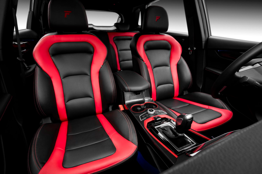 斯威钢铁侠除了“长”得帅,内饰设计同样炫酷;内饰驾驶舱采用时尚红黑拼色处理,大面积皮革材料,超大尺寸全景天窗,红黑座椅蜀绣工艺"F"头枕,紧跟潮流的科技配置等,每个细节都在向大家传达斯威对运动和科技的理解。