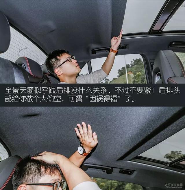 后排座椅也体现出一定的包裹性,除了头枕为可调式外,座椅设计、包覆材质等都是与前排座椅同步。值得称赞的是头部空间,全景天窗没有惠及到后排乘客,却为他们创造出色的头部空间,纵向的腿部空间也不错,属中上水准吧。