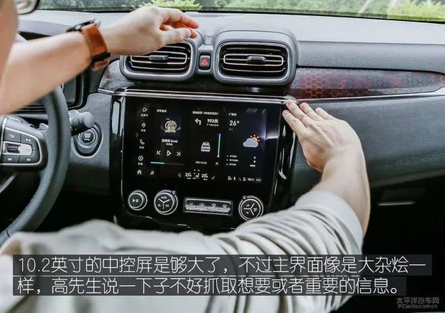中控屏吧,显示清晰细腻、功能也够丰富,不过界面还需要优化,例如主界面把所有信息都在一起了,容易造成视觉混乱、疲劳。
