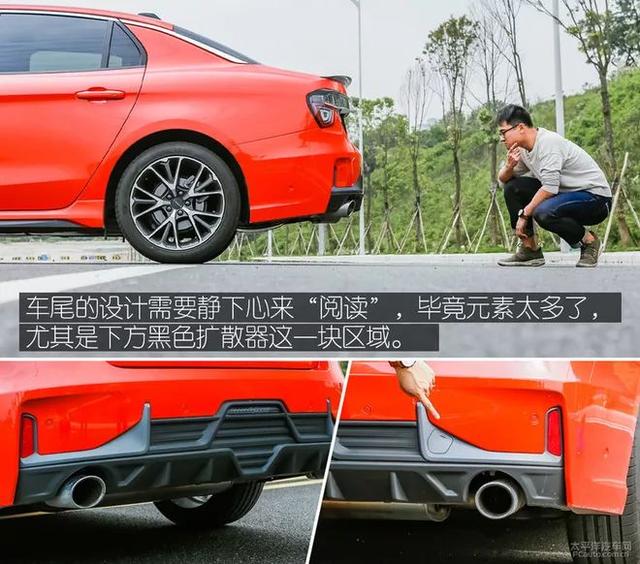 车尾倒是挺吓唬人的,黑色小尾翼、黑色扩散器等,似乎告诉后车它并非等闲之辈,实际上还得跑一跑才能定论是否真的如此。