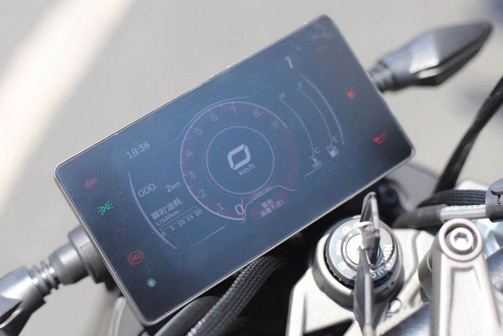 最大的改变是这块很有质感的全彩液晶仪表,开机动画相当有科技感,而且还有400NK的专属字样。状态灯均匀的分布在仪表盘两侧,息屏状态下不可见,点亮仪表的时候会有背光显示。