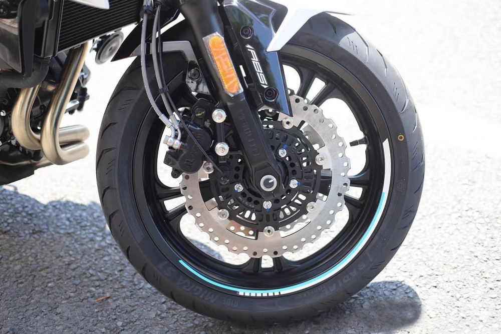 正立式前叉、西互双活塞刹车卡钳,前双碟刹盘、ABS,正新的轮胎等等,这些配置基本上保持不变。
