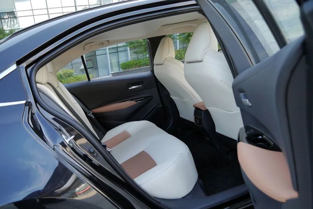 除了动力这个显而易见的优势之外,车内乘坐空间也是我关注的另一重点!实际体验,我可以明显感受到凌尚比雷凌多出50mm的轴距,被扎实的反应在更阔绰的后座腿部空间上。但如果就后座头部空间来说,其实相比凯美瑞还是稍微紧凑了些。
