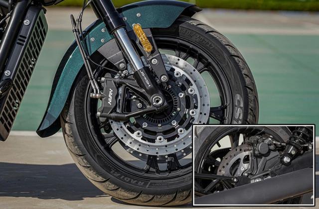 安全方面,这款车前轮采用的是双碟刹盘,同时匹配日信对象四活塞卡钳,而后轮则是采用单碟刹匹配单活塞卡钳,同时标配ABS防抱死系统,配置上的整体表现还是不错的。