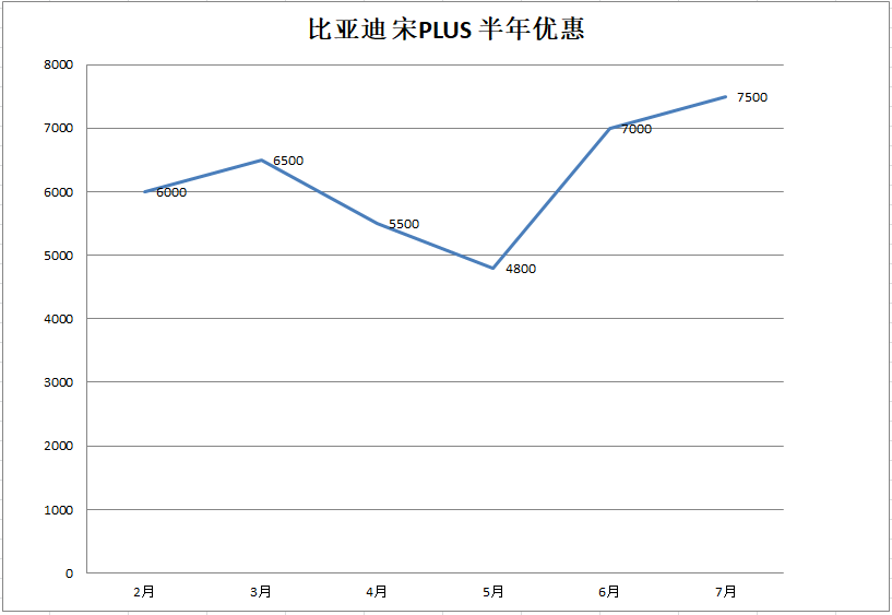 产品层面表现优秀,价格层面可能就要反其道而行之了。如今比亚迪宋PLUS热度不减,按照半年优惠走势来看,6000-7000元左右的现金优惠是其正常波动区间。因此,7月份7500元的现金优惠已经算是2021年的高点,此时入手也算是近半年来的一次成功抄底。千万别不服,燃油版车型能有如此高的优惠已经算很不错了,看看旁边的DM-i车型,不但一分优惠没有,从交付定金到提车还要等待至少4个月时间,这么一想心里是不是好受多了?