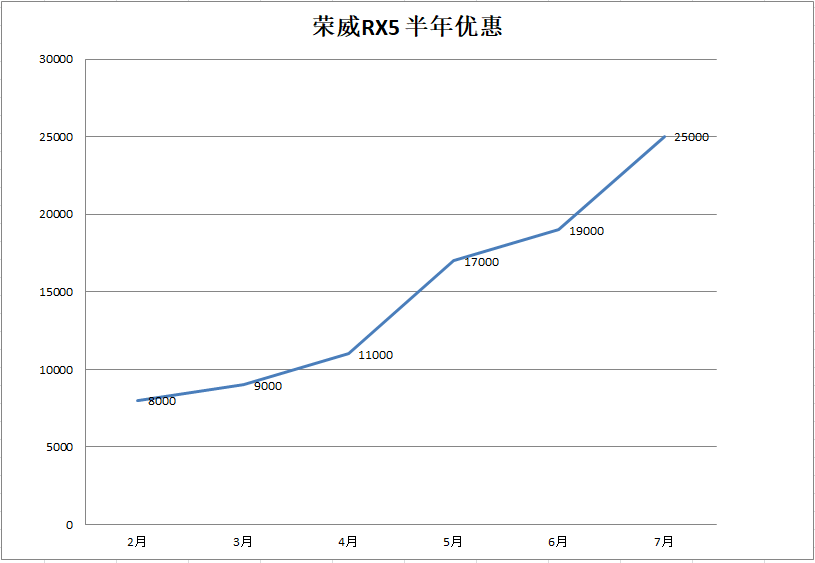 可能是承受了不断增加的销量压力,自今年春节之后,荣威RX5的优惠幅度就不断走高,从一开始的8000元到如今的2.5万元,整整翻了3倍。春节期间买车的小伙伴估计已经哭晕了,而目前的大幅优惠也是“等等党”的胜利,此时下手真的太划算了。不过需要注意的是,2.5万元并非所有车型、所有地区都能享受到的优惠幅度,一般入门级车型的优惠由于成本和定价原因并不能达到如此水平。