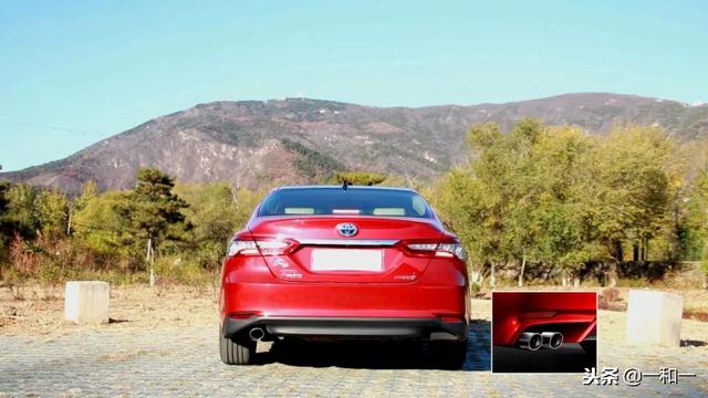 相比于车头,车尾就有点平淡。在视觉上车尾能感觉到比较扁平,主要原因是尾灯扁平化的设计。混动版尾气为左侧单出,运动版为夸张的四出排气,气势上很唬人。