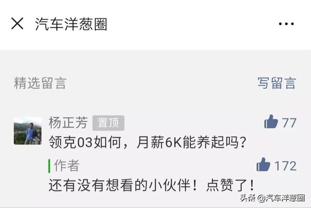 《购车用车成本大调查》又来啦~在年前的一期文章下面,小伙伴们对领克03的购车用车成本很感兴趣,那好饭不怕晚,咱们今天就来跟大家分享一下,领克03的购车用车成本!月薪6千到底能不能养得起它呢?看完就知道啦!