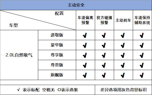 亚洲狮全系5款车型,均标配2.0L+CVT,主被动安全、辅助操控配置上,差异也不大,因此,如果要选出一款性价比最高、最适合购入的车型,我个人会把票投给: 2.0L 豪华版
