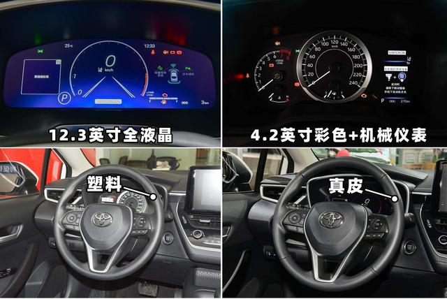 进取、豪华、尊享版配备的是塑料材质方向盘,尊贵版和旗舰版则为真皮,方向盘的多功能控制,以及上下+前后调节,全系所有车型都有给到。最后进取、豪华、尊享版,采用的是4.2英寸彩色仪表盘+机械仪表盘的组合,尊贵版和旗舰版直接配备12.3英寸全液晶仪表盘。