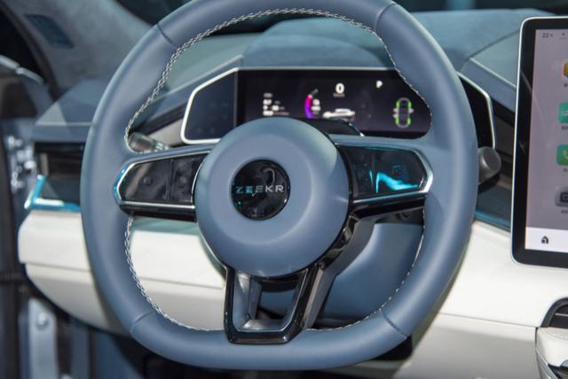 全系标配真皮方向盘,这个价位也应该的。只是这个方向盘功能区采用触控,虽然还没在实际驾驶中去体验它的使用表现。但对于方向盘功能区而言,还是物理按键操作更方便,容错率更低。能不能加点钱选装物理按键?@极氪汽车