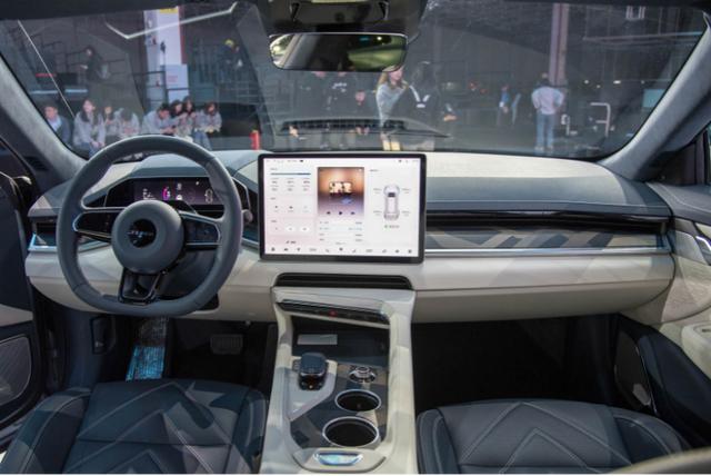 中控台整体造型已经在多次官方发布官图之后看着很熟悉了,但坐进车内整体这种高级感是真可以感受到的,存质疑的小伙伴真的可以去店里坐坐看。整体中控台布局也是简约风格,能整合的都整合在了标配的15.4英寸显示屏上,常用的风挡加热等功能键布局在下方的触控按键区。音响控制单独留了一个旋钮,谢谢。