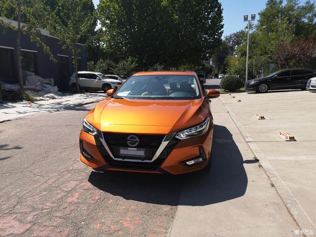 然后我就看到了轩逸,哈哈,店里放的也是这款旋风橙,特别炫!兴奋的围着轩逸转着看了一圈,这外型也是我的菜啊!