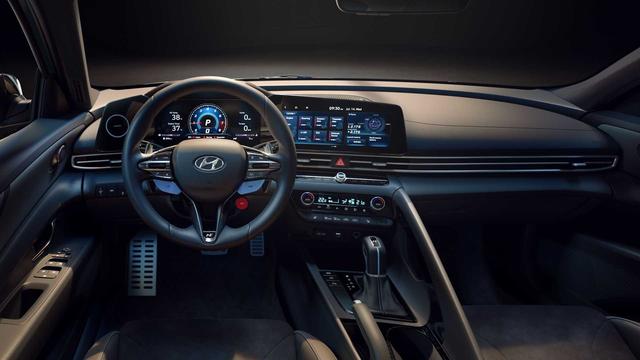 与采用了诸多激进、运动元素的外观造型相呼应的是,伊兰特N在动力性能方面自然也极为出众。