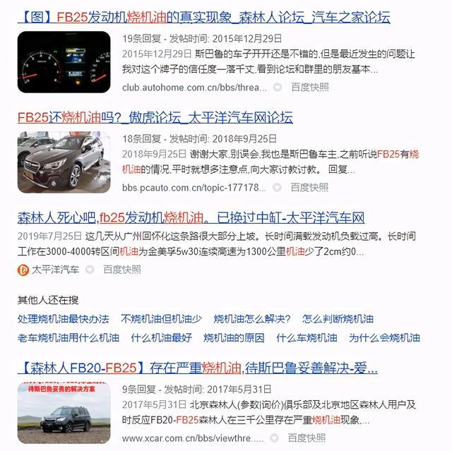 如果要买2.5自吸的森林人,也就是搭载FB25这台机器的车子,一定要注意是否大修过发动机,因为这台FB25的机子有概率会出现烧机油的情况,而且消耗的还比较快,需要换中缸来解决