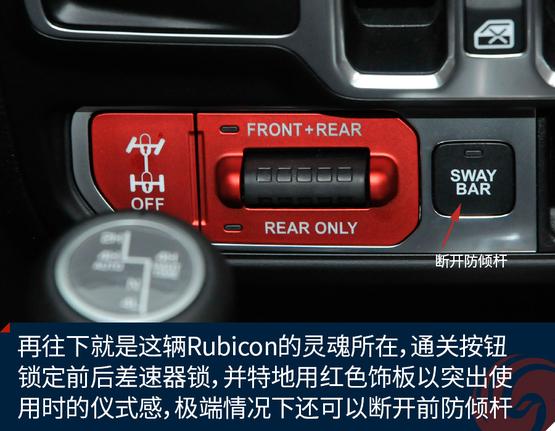 4H AUTO是这代牧马人新增加的驱动模式,日常使用时不用再频繁手动切换两驱和四驱,系统会自行判断驾驶情况选择两驱或四驱模式。另外,作为Rubicon的看家本领,Rubicon除了拥有前后桥差速器锁外,在4L挡下还拥有4倍的放大扭矩。