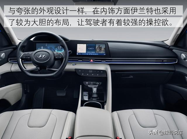 第七代伊兰特在内饰方面进行了较大的改动,以驾驶员为导向的环抱式设计大大方便了驾驶员对车辆的掌控。在中控台、扶手等我们肌肤经常触碰的地方大面积运用软性材质。平底方向盘的握力非常好,中高配车型还具有加热功能,在方向盘调节功能上,只有高低调节不能前后调节。中高配车型还配有10.25英寸的全液晶仪表以及10.25英寸的中控屏。