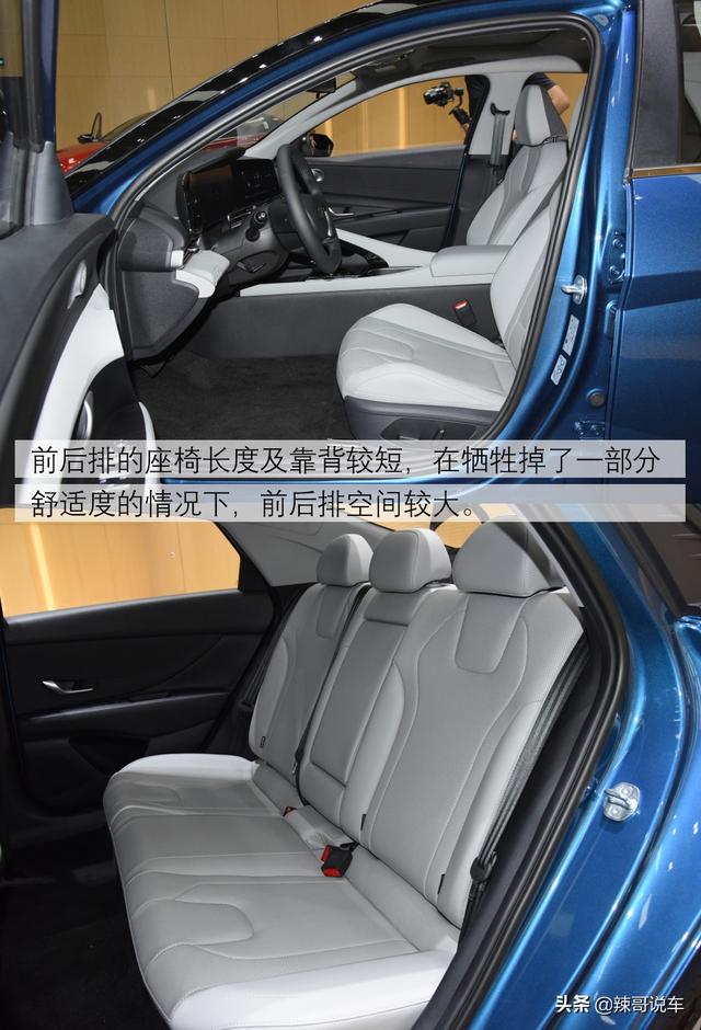 第七代伊兰特2720mm的轴距保证了车内较大的乘用空间。前、后排座椅填充都较为扎实,前排腰部两侧的包裹性也很好。辣哥1.8米的个头,在保证前排坐姿舒适的情况下,坐入后排膝部还有2拳的距离。后备箱的空间充足,虽然只有高配版才具有后排座椅放倒功能,但溜背造型也给后备箱带来了更多的储物空间,能满足日常使用。