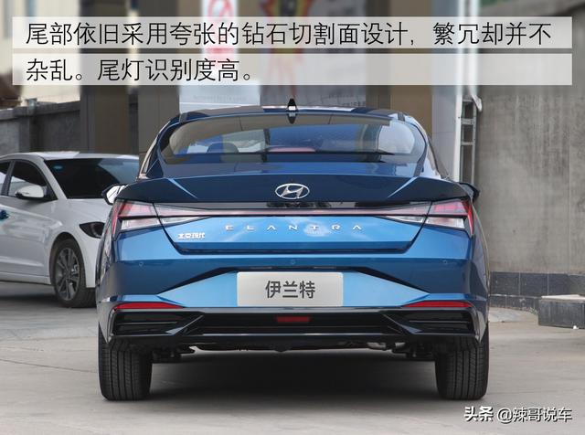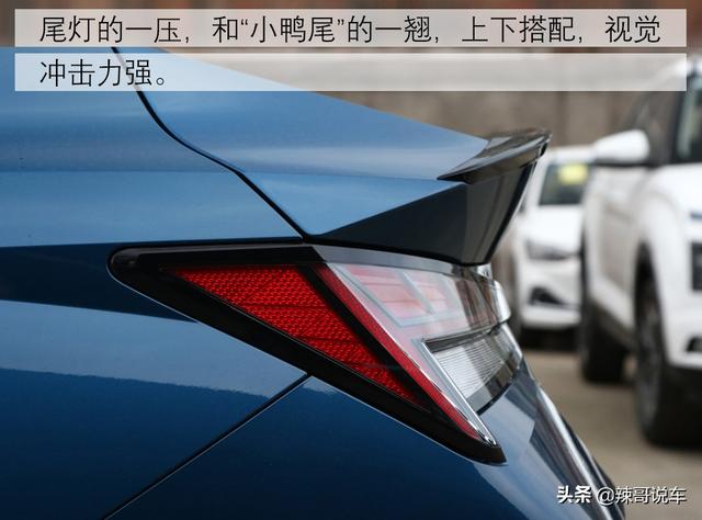 第七代伊兰特尾部设计的最大亮点就是横亘其中的贯穿式尾灯,虽然这种设计很多车型都在用,但是在夜间点亮后有如此高辨识度的还真是少见。