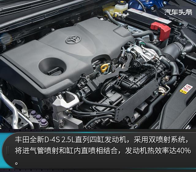 先说说全新凯美瑞的这套动力系统。全新凯美瑞主打的是一台全新的D-4S 2.5L直列四缸自然吸气发动机,这款发动机采用了双喷射系统,将进气管喷射和缸内直喷相结合,而且两种喷射方式可以自由切换,从而确保了发动机在任何时候都能获得最佳的燃油状态。据厂家介绍,这台发动机热效率可达40%,混动版本的发动机热效率达到了41%。从理论上讲,发动机热效率越高,汽油燃烧后所转化的动能的效率也就越高,发动机也就相对更省油。