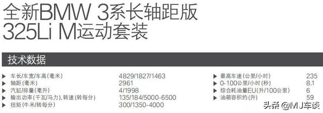 细看配置表,发现了一些有意思的数字。标轴325的油耗比长轴版更高,分别是6.3升/100公里和6.0升/100公里,这是为什么呢?而上一代车型320标轴、长轴油耗都是6.2升/100公里(此处不考虑xDrive版本)。