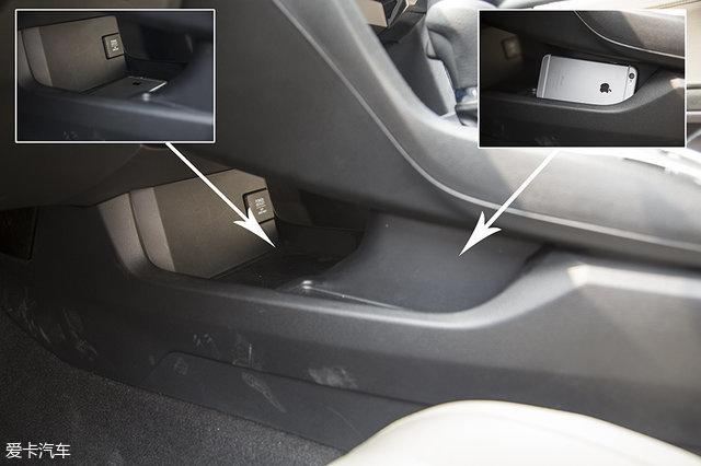 中控台下方有一个隐藏式储物槽,放在这里的物品有着更好的隐私性,而且在两侧还有可以放置手机的小储物槽。