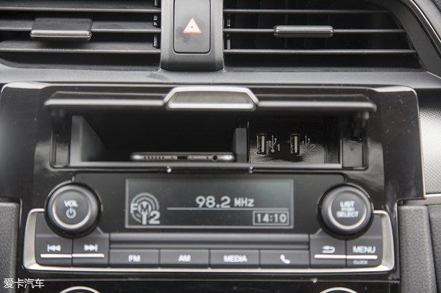 中控台上方的储物槽内可以放置一些随车的杂物,USB接口也放在这里,与手机连接十分的方便。