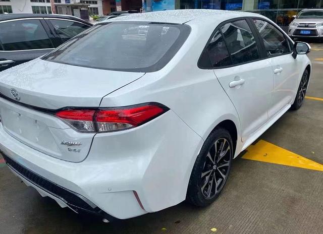 从外观设计上来看,我个人更倾向于雷凌的运动外观设计。大灯采用了战斧式的大灯,这是区分雷凌和卡罗拉本质上的区别,也是特别明显的,并且两侧的大灯由熏黑饰条进行了衔接。饰条上方镶嵌着丰田的车标,看起来还是挺不错的。进气中网采用了大面积的熏黑设计,面积占到了整个车头的3/4,运动感被很好地凸显出来。这款车型的大灯配置也是非常高的,拥有led远近光大灯以及led日间行车灯。事实上,雷凌系列车型都采用的是这样的配置。由于这款雷凌的配置不是很高,所以在雾灯位置,采用的是一根镀铬饰条来给予点缀。