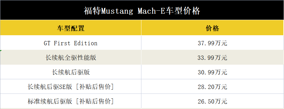 7月17日,福特先锋智能纯电SUV -Mustang Mach-E发布了全新长续航后驱SE版车型,补贴后售价282,000元。至此,Mustang Mach-E共有5款车型可供预订。