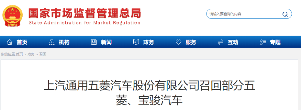 上汽通用五菱汽车股份有限公司召回部分五菱、宝骏汽车