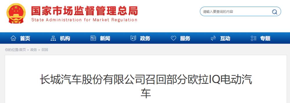 日前,长城汽车股份有限公司根据《缺陷汽车产品召回管理条例》和《缺陷汽车产品召回管理条例实施办法》的要求,向国家市场监督管理总局备案了召回计划。决定自2021年7月16日起,召回2018年7月7日至2019年10月30日期间生产的长城欧拉IQ电动汽车,共计16216辆。