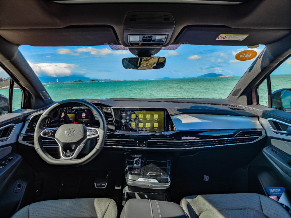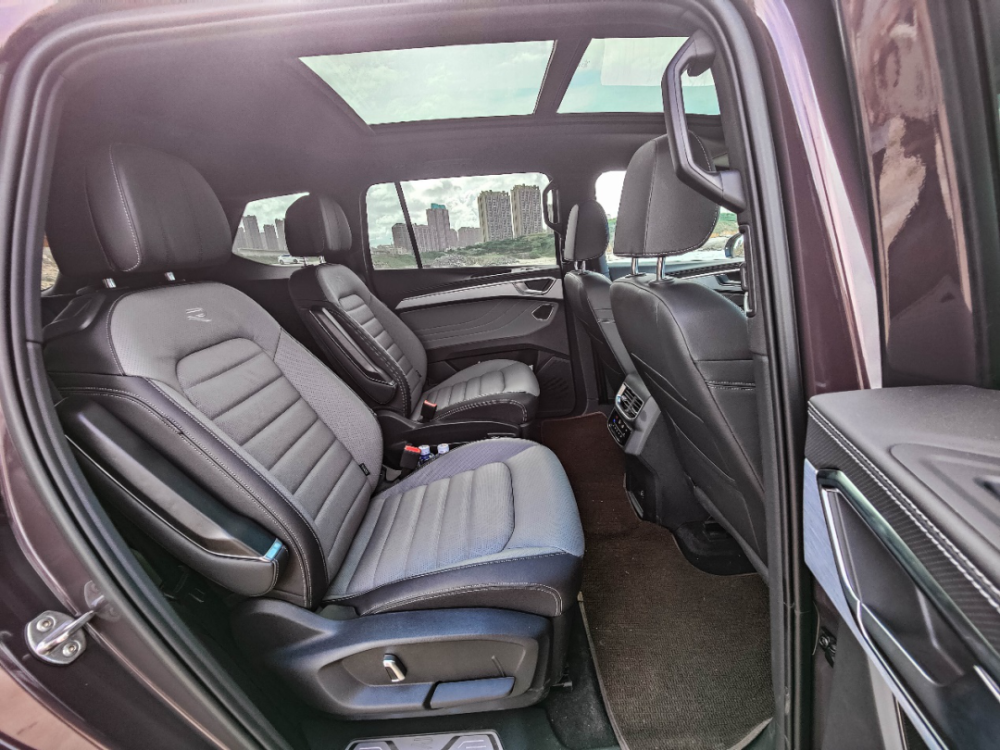 因为我们试驾的这款车,是2+2+2的一个布局,所以第二排座椅必须是集各种豪华感、舒适感于一身。但因为我们试驾的车型是四驱R-LINE版,并非顶配,所以第二排座椅未具备通风和按摩功能。但其舒适性,还真有点像坐在MPV的第二排那种豪华座椅上的感觉。