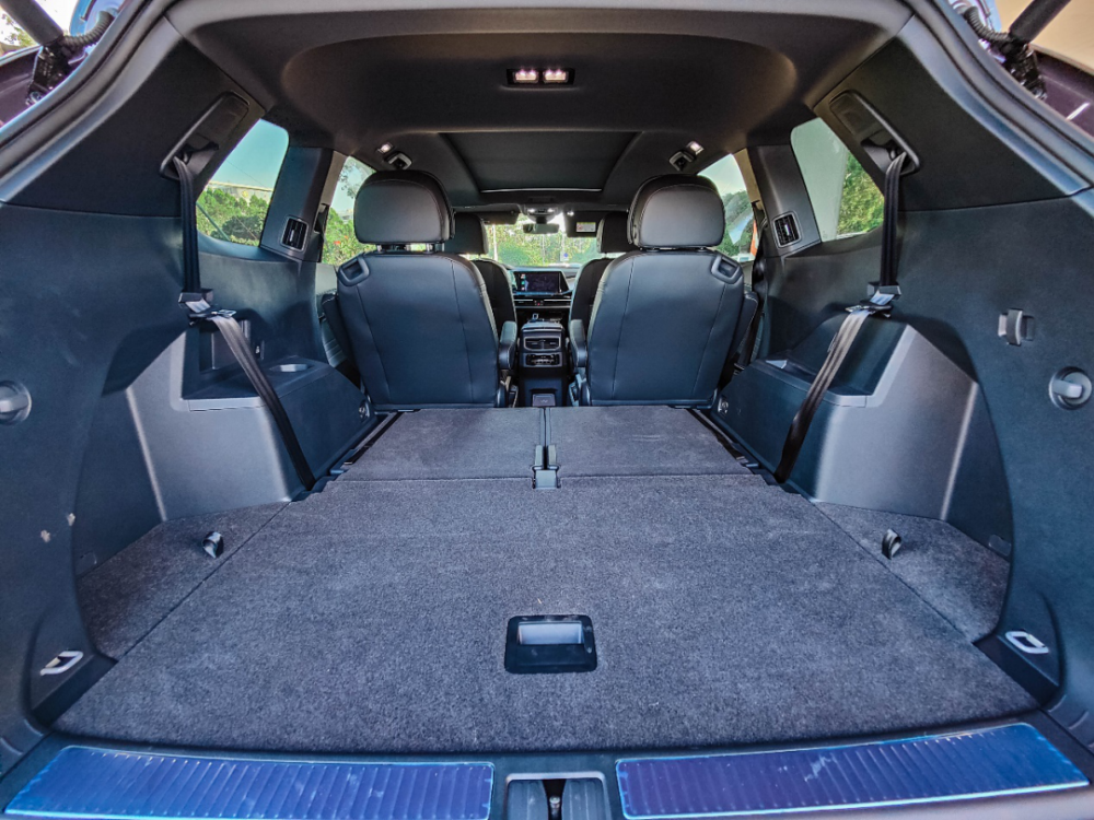 虽说第三排的空间,的头部和腿部空间都还算OK,不会感觉到压迫的感觉。但它的坐垫比较低,所以我大腿的前半部分,没办法获得一个较好的承托。对于长途驾驶的话,坐第三排的人肯定会觉得大腿会有点累。当然,正如我刚才所说,三排也有独立储物空间,和独立的USB充电口,相信能愉快的刷手机,还可以让你不那么关注腿累的事。
