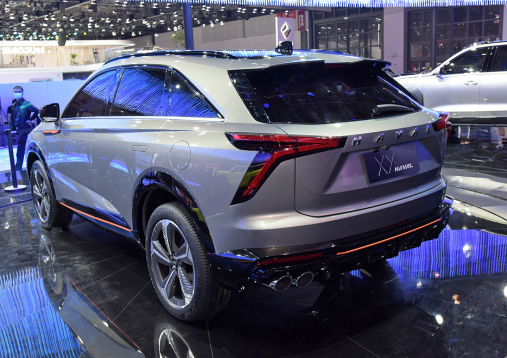 车身侧面很明显属于轿跑SUV风格,大溜背车顶线条已经很明显了,不过相比宝马X4或者领克05,这款哈弗神兽溜背效果还算比较收敛,毕竟整部车尺寸并不算特别大,需要保证后排乘客头部空间充裕。车尾采用的是全新的立体式尾灯,这种分叉造型其实有点像长安CS75plus,搭配多边形大口径排气管出口,总体来看哈弗神兽全新SUV颜值很特殊,这款车的出现让长城哈弗的审美再次错乱。