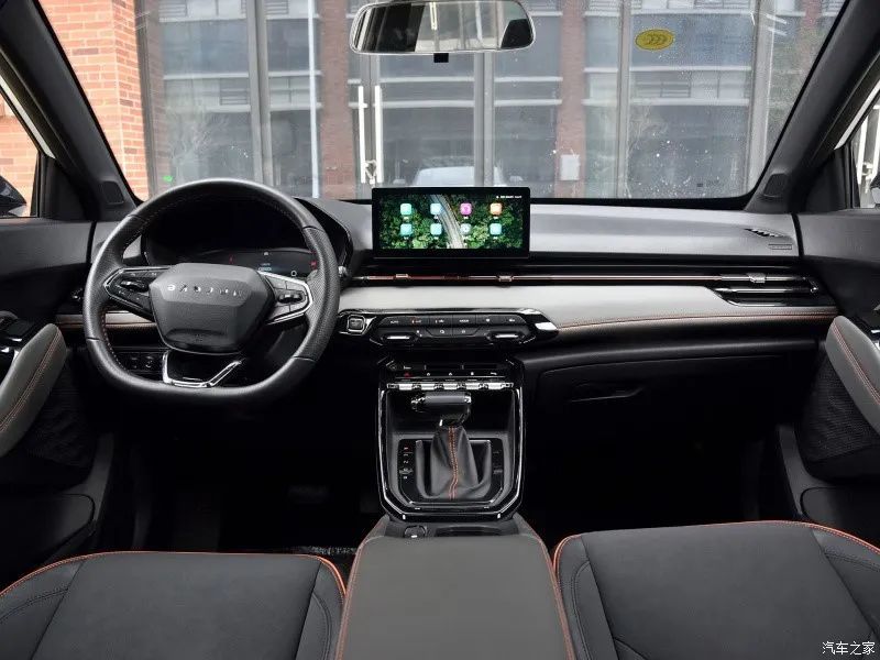 新宝骏RS-3内饰采用环抱式的座舱设计,横向线条的加入也进一步延展了其车内的视觉宽度。全系标配了10.25英寸的中央触控屏,功能方面支持语音识别、车联网以及OTA升级,连接手机之后还可以使用在线音乐、实时导航等功能,并且可将手机上的应用投射至中控屏,使用起来很有科技感。