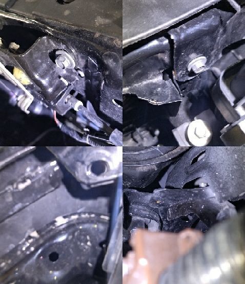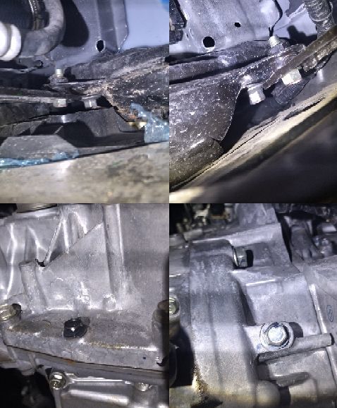 发动机变速箱的机脚螺丝都有明显的拆卸痕迹,倒不是阿伟怀疑发动机吊装了,而是明确无误的告诉大家,发动机就是吊装了。因为修复避震包和纵梁连接板需要把发动机吊出来才能操作。