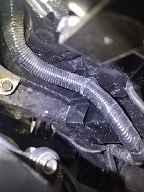 右前翼子板和前机盖一样,整个面二次喷漆,螺丝有拆卸拧动,那么右前翼子板也是有更换。车头两个覆盖件拆换,看来我们要好好的排查前面的事故了。