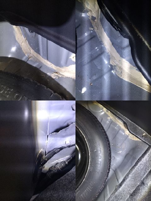 右侧避震包和纵梁的连接板也焊接了,可以很清楚的看到新的焊点,是修理工手工焊点再打胶修复的。不用多说了,妥妥的一个大事故车!等下我们把车子顶起来从底盘再好好检查检查。