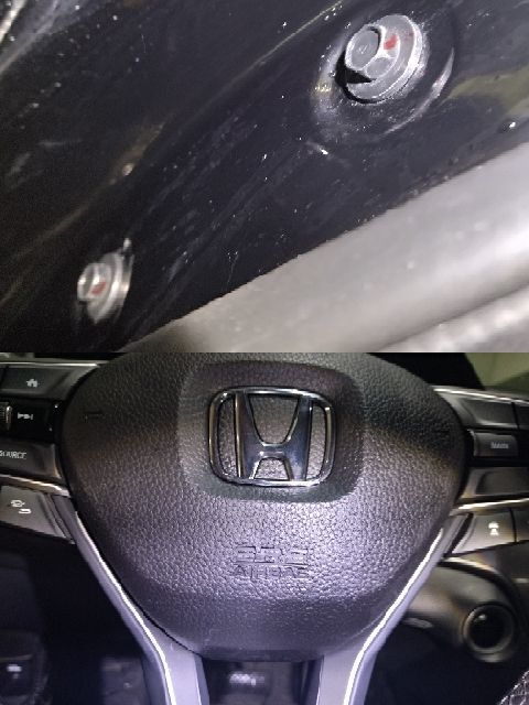 能看到主驾气囊边角的毛刺吗?还有气囊上的字体也不规整,估计是更换了一个副厂件,仪表台骨架螺丝也有过拆卸,推断仪表台和副驾气囊也是更换了的。