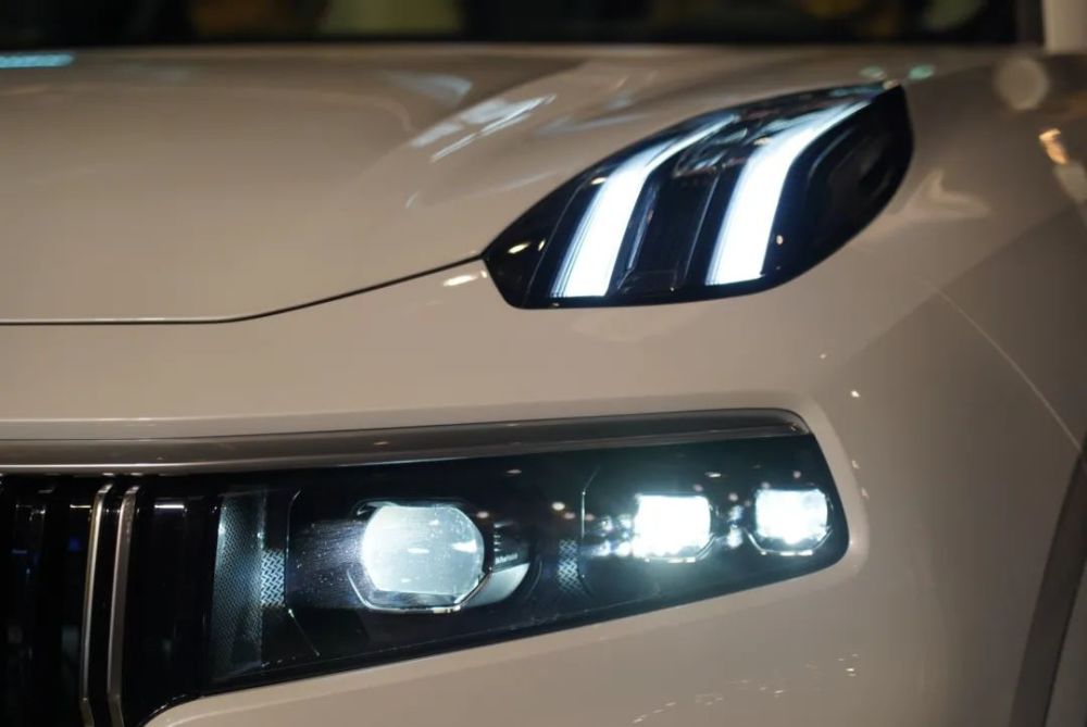 可是作为一款北欧设计风格的车型,领克09显然不会选择如此粗犷的设计,而是用纤细银色或者磨砂哑光材质的饰条夹黑色高光漆饰条,组成更有层次的整体。整个进气格栅还是用了被称为“浪涌”的设计,饰条会有一个折线的处理,看上去更加立体。同时,进气格栅顶部还有一道弧形的饰条,连接着前大灯,形成更有横向张力的设计。