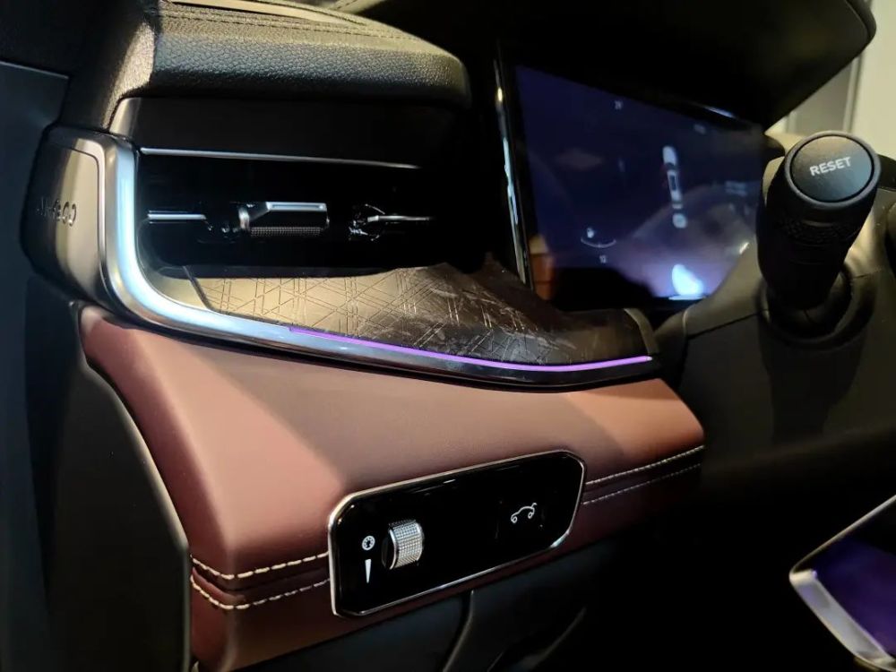 领克09在豪华质感的营造上走的也是精致典雅的路线,车内使用了大量的软材质覆盖,大量的皮革包裹让车内呈现出典型的豪华车特征。同时领克09车内也延续了铝制饰板的使用而非传统的实木饰板,不过蚀刻技术,这些饰板上花纹也有了一些复古的痕迹,而不是之前那些过于科技感的花纹,看上去更合适09的消费群体。