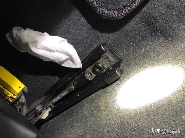 和小姐姐以及车行沟通需要进一步检测有无水泡的嫌疑,所以接下来的检测要拆掉部分车辆部件。咱们车行老板也没多说啥,便是同意了。随后我就拆卸掉周围胶条通过观察内部以及地毯周围并没有发现明显的泥沙痕迹。