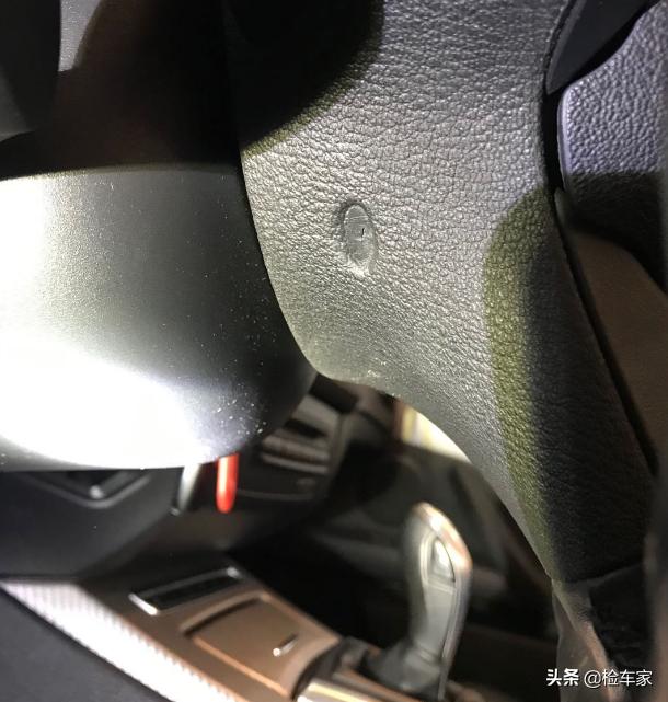 方向盘存在明显的拆卸痕迹,因为拆卸方向盘的原因很多,我们不能因为前部存在撞击就贸然断定换过气囊,不过听车行的业务员说前车主更换过方向盘,不知道是不是这个情况,检测到后面的细节自然就能知道啥情况了。