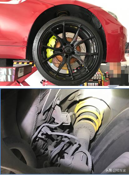 改装过后的刹车系统以及轮毂,四条悬挂系统均存在了改装的现象出现。这前车主改成这样,是想让#小姐姐#们对他:你好坏哦,我好喜欢哦吗?