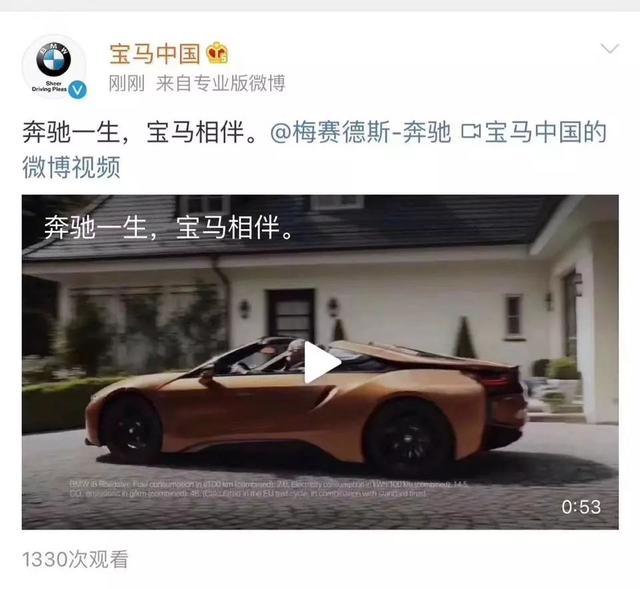 最近几天,奔驰和宝马的隔空暗送秋波可是羡煞旁人,爱慕之情溢于言表。事情的经过是这样的: